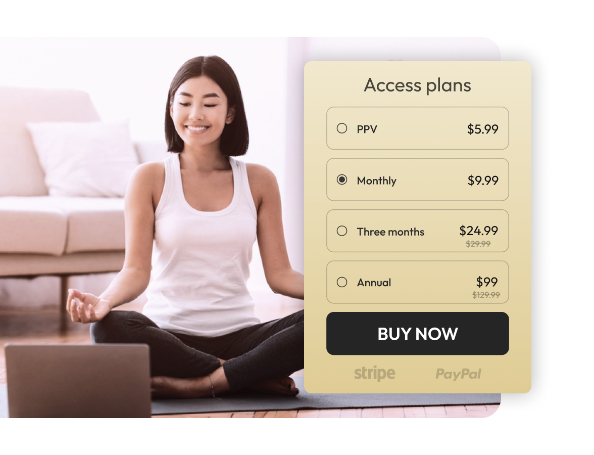 Maximize your opportunities to monetise video content. Manage pricing, special offers and promocodes for VOD content and live events with PayPal or Stripe services